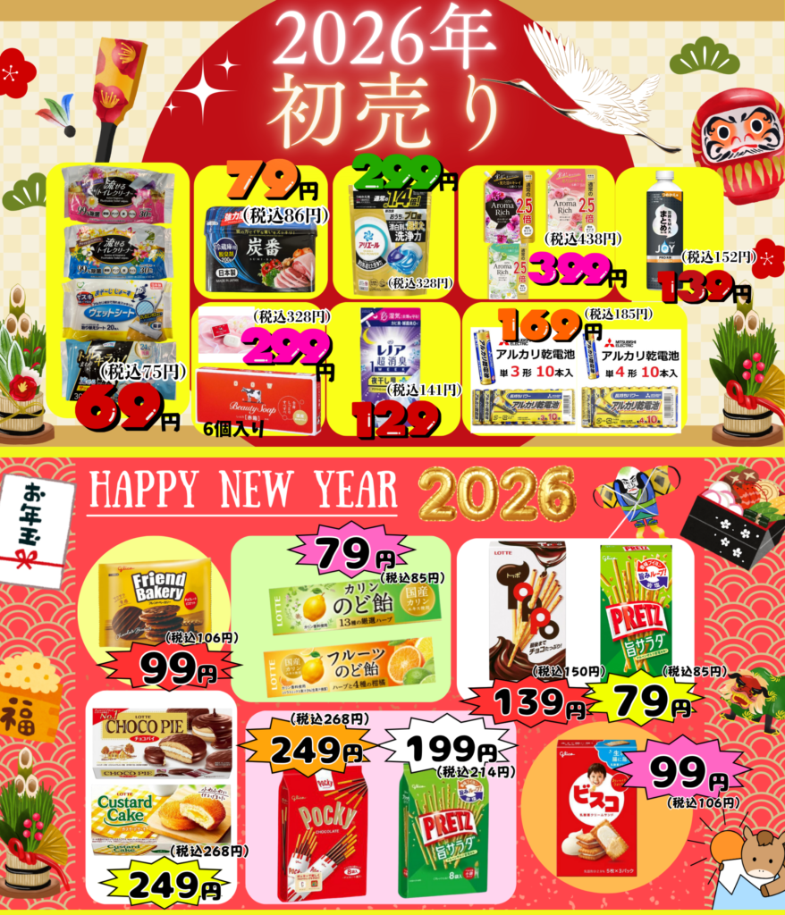 2026年も、毎日の暮らしに役立つ商品を お求めやすい価格でお届けできるよう頑張ります!