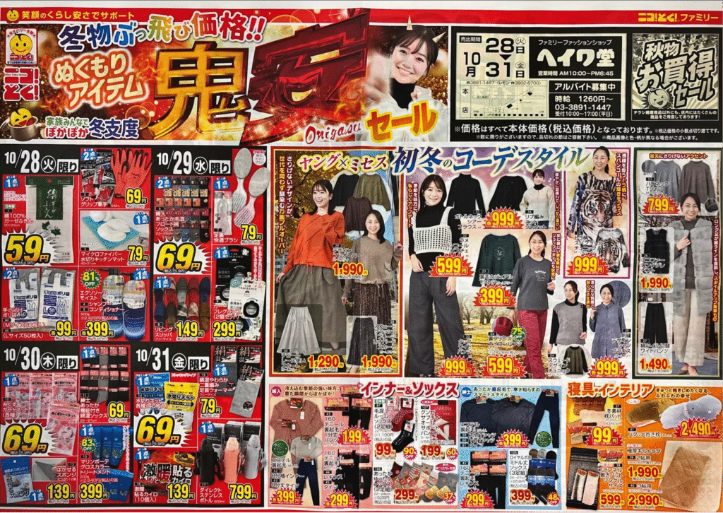 10/28~10/31 ぬくもりアイテムの「鬼安セール」をやります