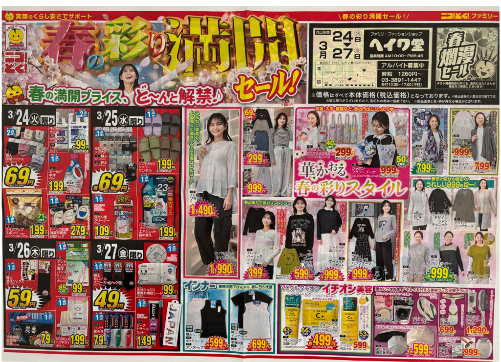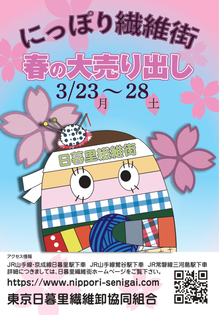 また、日暮里繊維街では3/23(月)~28(土)で 『春の大売出し』を行っておりますので、日暮里繊維街にも是非、足を運んでみて下さい。